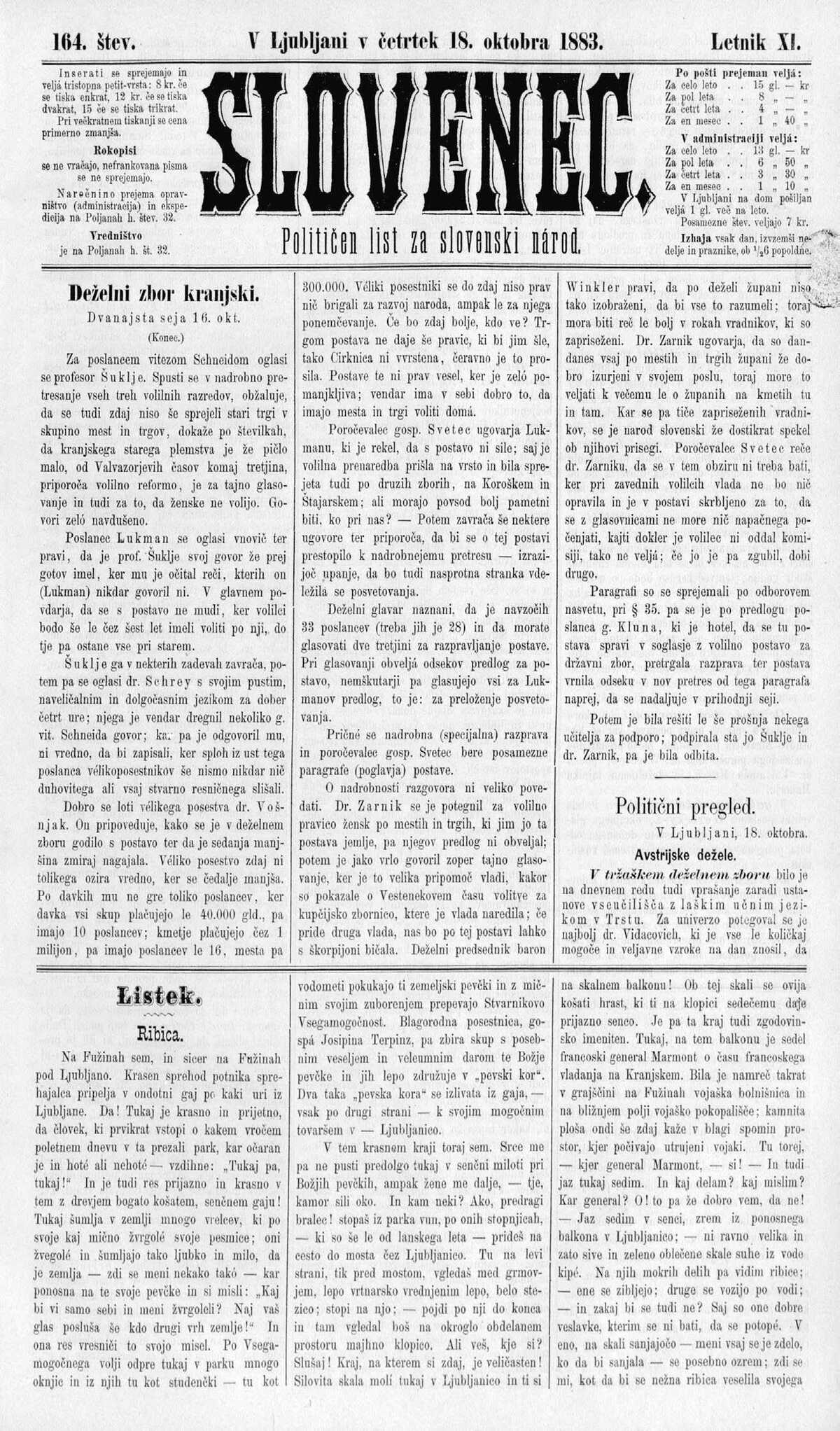 1Parliamentary transcripts constitute a rich yet complex source of data, often including varying levels of metadata and considerable diversity in content and format across countries and historical periods. Records of parliamentary activity have long been produced to ensure accountability and continuity, enabling both officials and the public to monitor decisions made within the legislative arena. Given the central role of parliaments in the political structures of most contemporary states, it became customary to maintain written documentation of their proceedings. However, official transcripts of debates were not universally available from the outset. In many contexts, parliamentary debates were initially documented only in abbreviated or paraphrased reports, often compiled by journalists and published in newspapers rather than disseminated by the institution itself. For example, unofficial accounts of the debate held on 16 October 1883 were printed in Slovenec (1873–1945), a newspaper subtitled as political newspaper for the Slovene nation (available through the sPeriodika corpus).